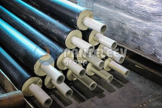 Для труб в ППУ изоляции характерно наличие двух слоев: несущего и защитного. Пространство между ними заполняется пенополиуретаном. Их производство возможно только в специальных условиях. Этот процесс предусматривает напыление пенополиуретана на стальную трубу с последующим покрытием слоем оцинкованной стали (также это может быть полиэтилен).